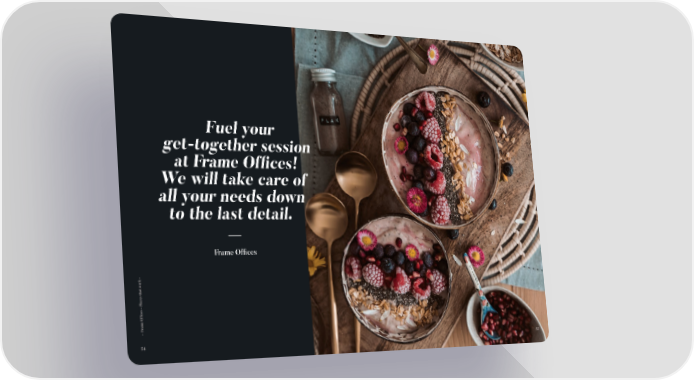 Frame Offices | Lookbook Page 27 Page 29Fuel your get-together session at Frame Of昀椀ces! We will take care of all your needs down to the last detail. Frame Of昀椀ces ork - ame Of昀椀ces - Places that w r - F 54 55