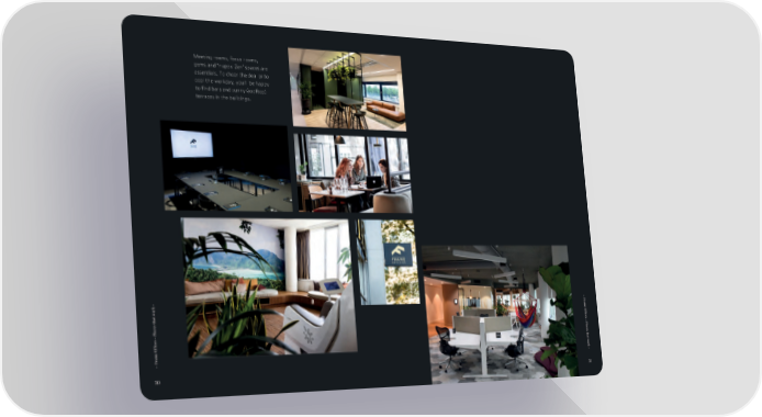 Meeting rooms, focus rooms, gyms and ‘Happy Zen’ spaces are essentials. To cheer the deal or to cool the workday, you’ll be happy to 昀椀nd bars and sunny (rooftop) terraces in the buildings. - F r ork - ame Of昀椀ces - Places that w ame Of昀椀ces - Places that w ork - r - F 30 31